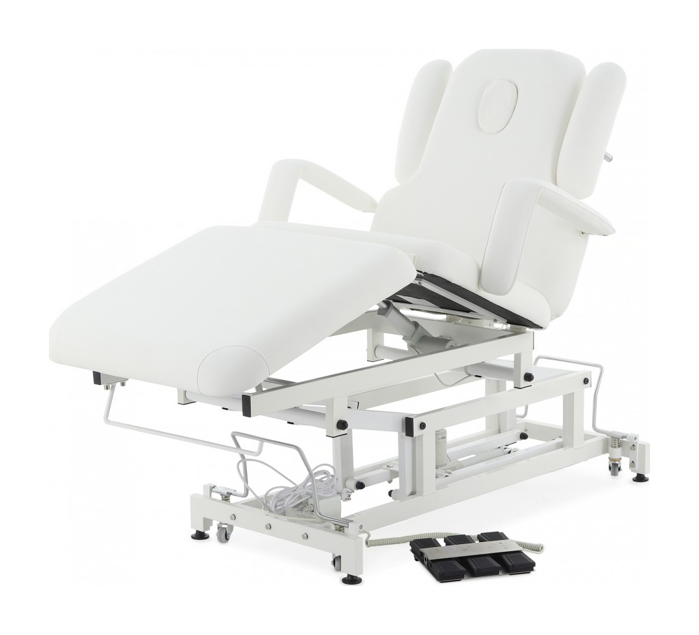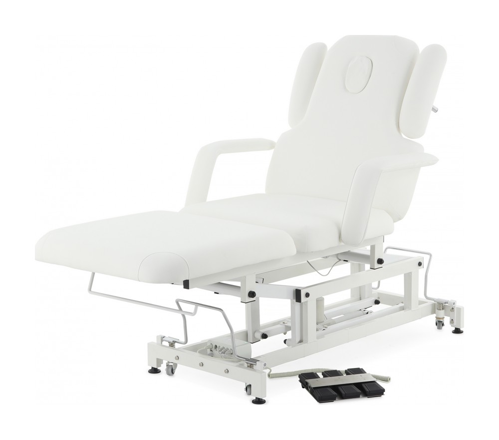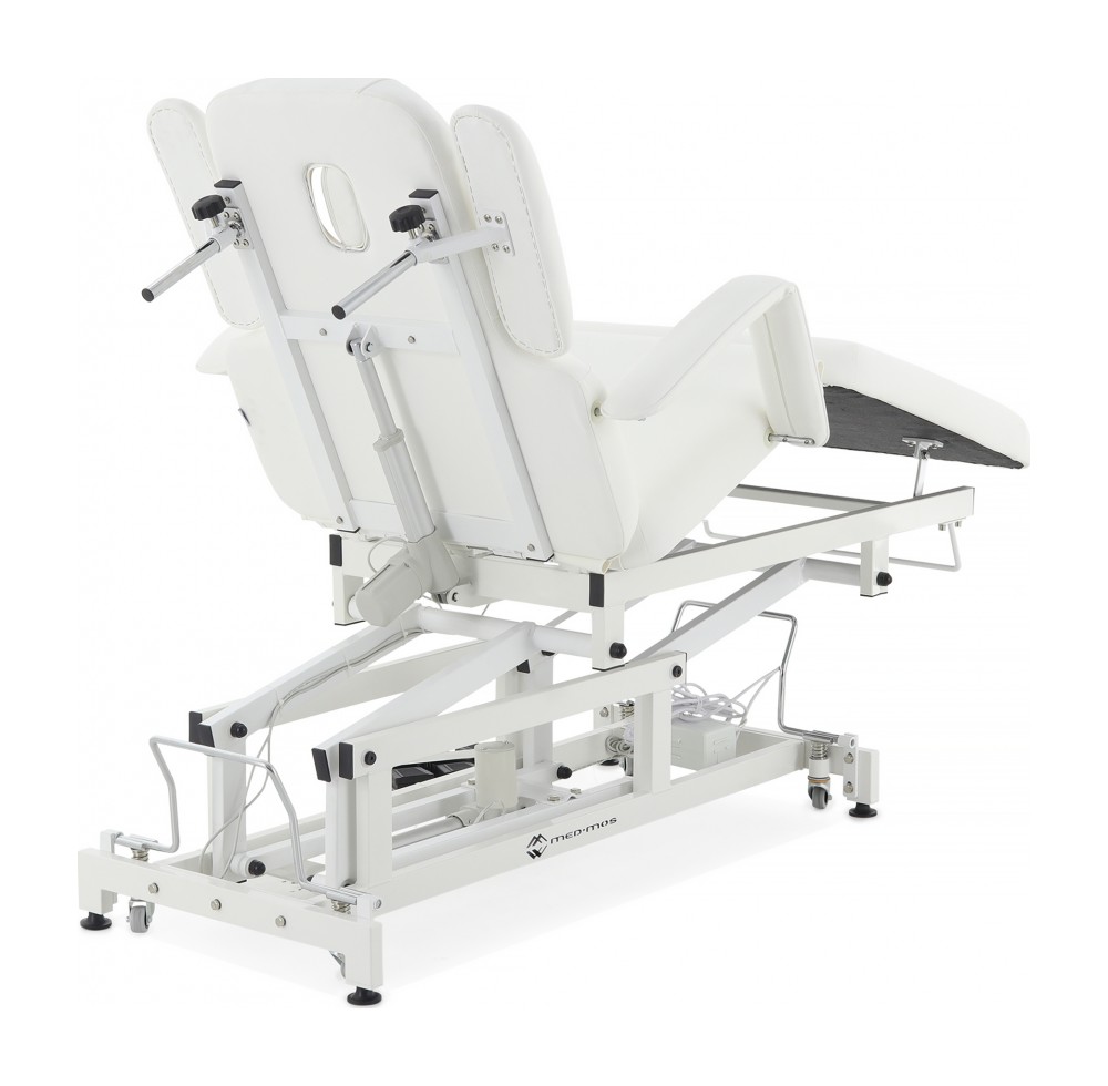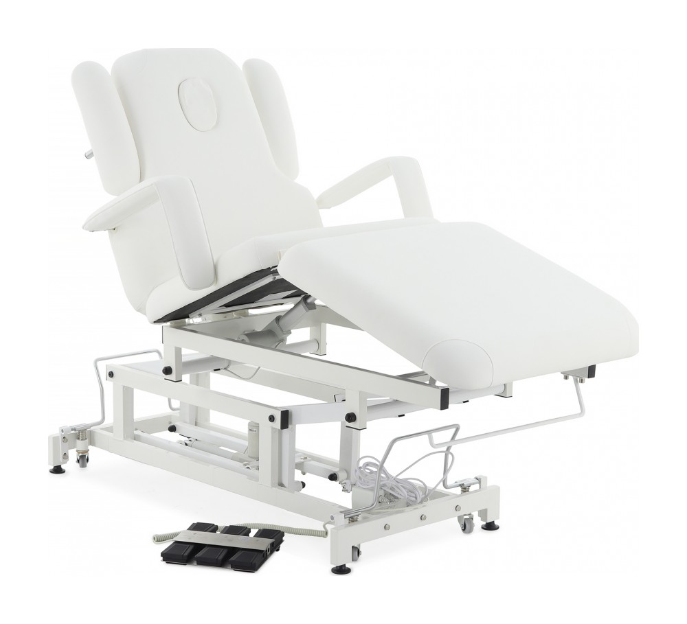 Широкий диапазон регулировок: спина, таз, икры, подлокотники, опоры для рук — всё подстраивается под индивидуальные требования процедуры.