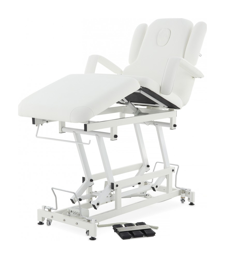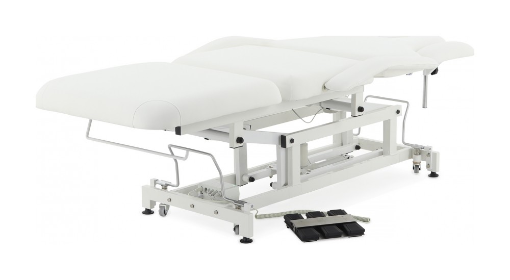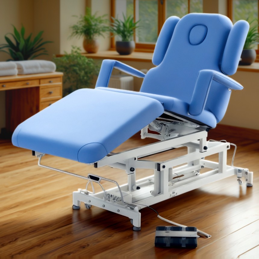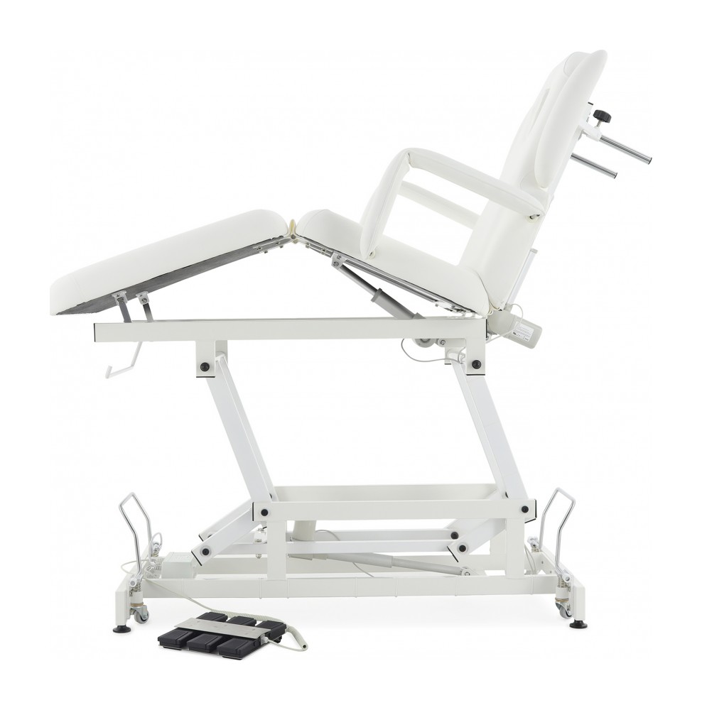 Широкий диапазон регулировок: спина, таз, икры, подлокотники, опоры для рук — всё подстраивается под индивидуальные требования процедуры.