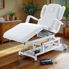 Удобство специалиста: ножной пульт и автоматические настройки угла наклона освобождают руки и позволяют работать с клиентом более эффективно.